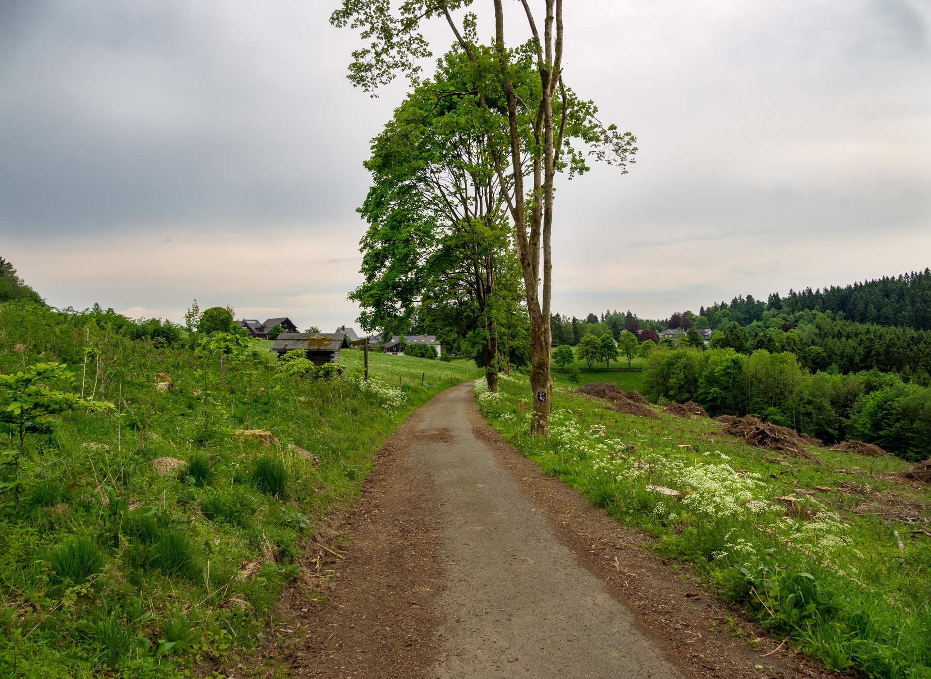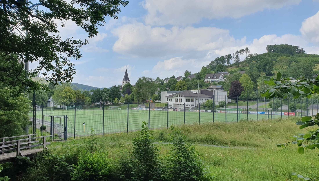 • Den Parkplatz an der Schützenhalle erreichen Sie, wenn Sie an der Kreuzung in Fleckenberg in Richtung Latrop abbiegen. Die Schütztenhalle liegt (kurz hinter der Kirche) auf der rechten Seite. Gehen Sie zurück zur Kreuzung (ca. 250 m), um den Ausgangspunkt der Wanderung zu erreichen.